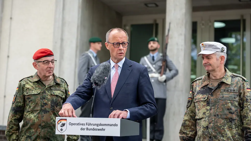 Merz besuchte das nahe Potsdam gelegene Operative Führungskommando am Tag der Bundeswehr, bei dem sich die Streitkräfte an zehn Standorten der Öffentlichkeit präsentierten. Die Bundeswehr registrierte dabei nach Angaben des Verteidigungsministeriums einen Besucherrekord. Es seien rund 280.000 Menschen gekommen - etwa 45.000 mehr als im vergangenen Jahr und mehr als je zuvor. Die Streitkräfte zeigten den Besuchern Kriegsschiffe und Panzer, Hubschrauber flogen Rettungsübungen, Soldatinnen und Soldaten erklärten ihre Arbeit und ihren Auftrag.