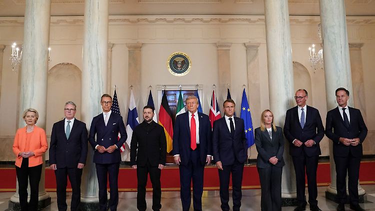 Es ist der nächste Akt des großen Gipfels im Weißen Haus: US-Präsident Trump begrüßt neben seinem Amtskollegen aus der Ukraine auch die europäischen Partner. Kanzler Merz erneuert in der Runde die Forderung nach einer Waffenruhe.