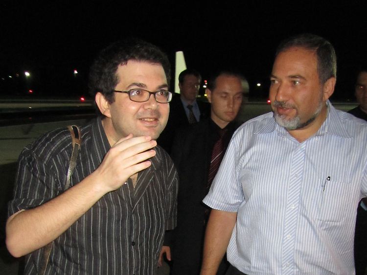 Rafael Hadad und Avigdor Lieberman nach der Freilassung am Flughafen.