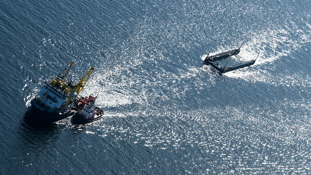 Langsam bewegt sich der Schlepperverband mit dem einst gestrandeten Wal in Richtung Nordsee. Den Fehmarnbelt lässt er hinter sich. Das Tier floate und bewege die Flipper, heißt es von einem Helfer.