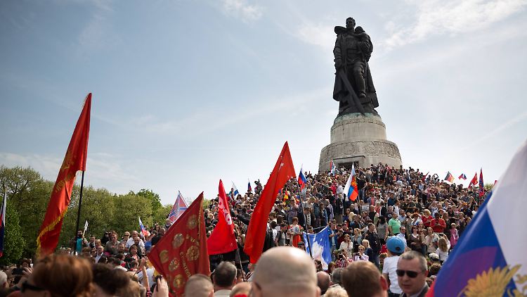 Die Rocker ziehen den Hügel hinauf, auf dem die größte Statue des Parks steht: Sie zeigt einen Soldaten mit einem langem Schwert in der rechten Hand und einem Kind auf dem linken Arm. Mit seinen Füßen zertritt er ein Hakenkreuz. Die Menschen bilden ein Spalier für die Nachtwölfe. Die legen ihren Kranz nieder, rufen noch einmal "Hurra, Hurra". Dann sind sie wieder weg. Ob das eine besonders würdige Form des Gedenkens ist, darüber ließe sich streiten. Zu Schaden gekommen ist zumindest niemand.