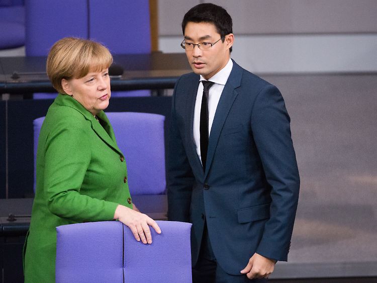 In der Union wurden die Liberalen schon mal als "Gurkentruppe" bezeichnet: Kanzlerin Merkel mit dem früheren FDP-Chef Philipp Rösler im Bundestag.
