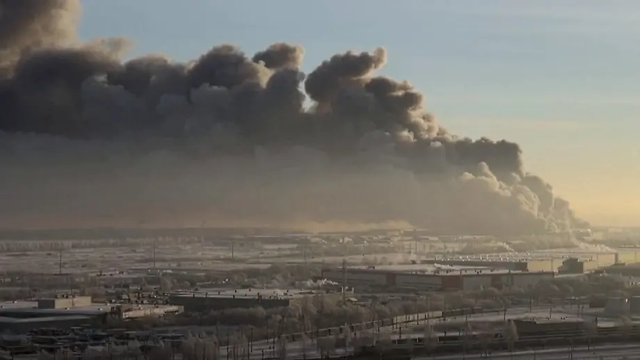 Lagerhalle brennt lichterlohMonströse Rauchwolke bedeckt St. Petersburg
