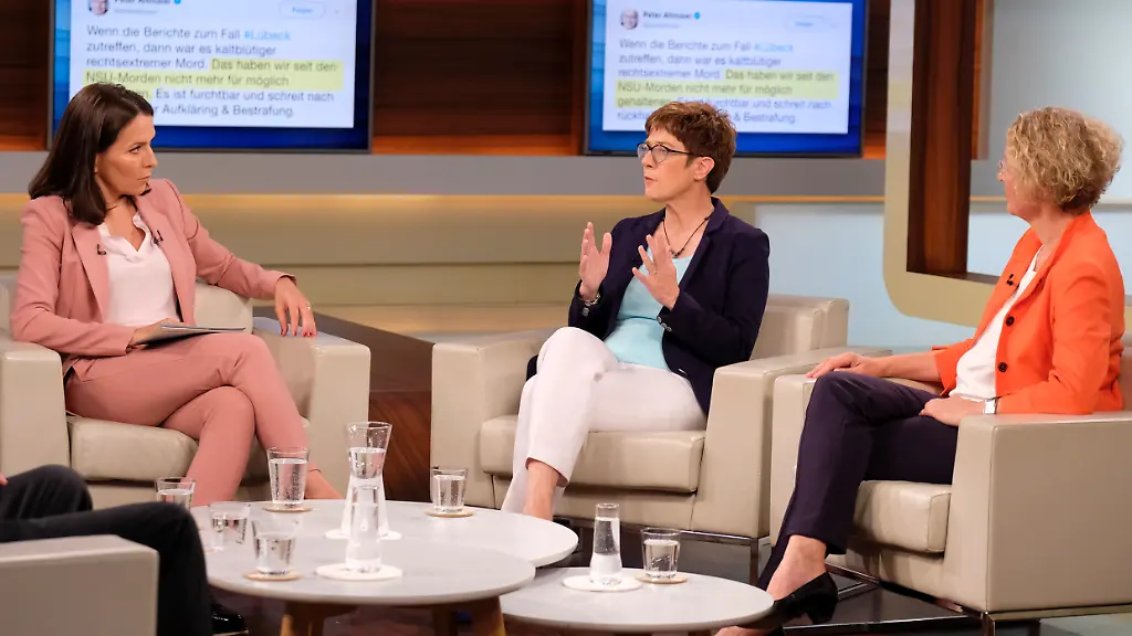 Es wäre interessant gewesen, die Meinung Kramp-Karrenbauers und Göring-Eckardts zu Taubers Idee, Artikel 18 anzuwenden, zu hören. Doch darüber sprach die Runde nicht. Das Ausmaß der Bedrohung durch 12.000 gewaltbereite Rechtsextreme wurde jedenfalls deutlich. So sehr, dass man nicht hysterisch ist, wenn man befürchtet, dass der Mord an Walter Lübcke kein Einzelfall bleiben könnte.