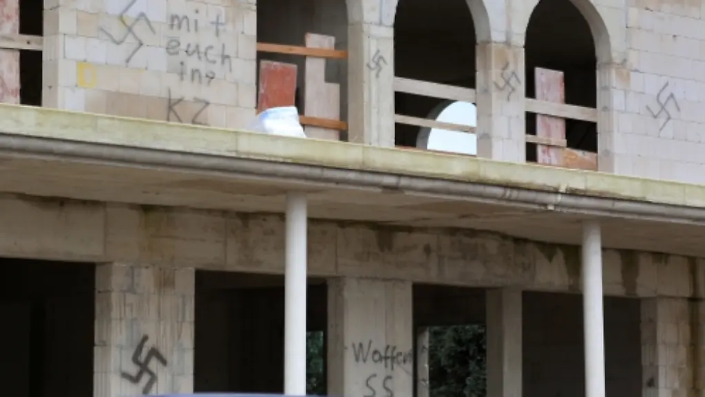 Unbekannte schleichen sich auf eine abgesperrte Baustelle und beschmieren den Neubau einer Moschee mit Hakenkreuzen. Der Staatsschutz ermittelt - und setzt eine Belohnung für Hinweise aus.