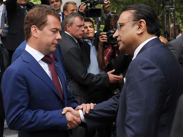 Medwedew bittet Pakistans Präsident Zardari um Hilfe bei der Suche nach den Terroristen.