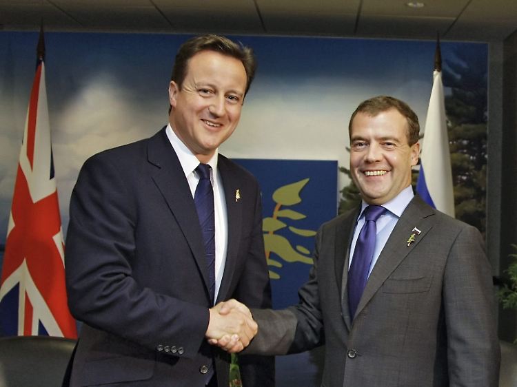 Russland und Großbritannien wollen sich nach jahrelanger Entfremdung wieder aufeinander zubewegen. Kremlchef Dmitri Medwedew und der neue britische Premierminister David Cameron vereinbarten in Kanada bei ihrem ersten Treffen einen Neustart in den Beziehungen. Nötig sei eine "grundlegende Korrektur", sagte Medwedew bei der Zusammenkunft mit Cameron beim in Kanada, wie der Kreml mitteilte.