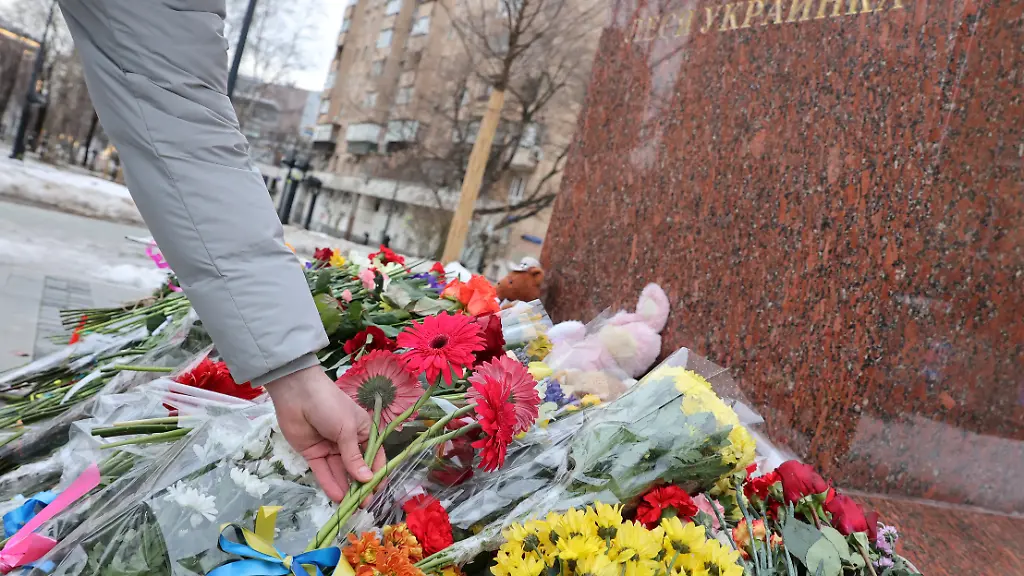 Nach russischem RaketenangriffMoskauer legen Blumen für tote Ukrainer nieder