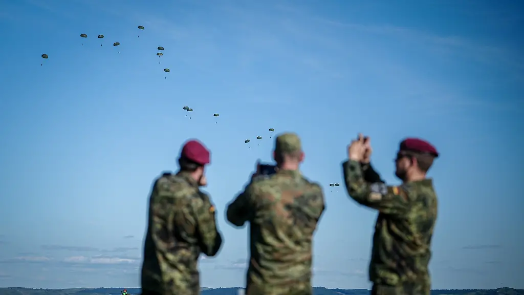 Wie an Perlenschnüren springen Hunderte Fallschirmjäger an der Südostflanke der NATO aus 14 grauen Transportflugzeugen: Mit der größten Luftlandeübung in Europa seit dem Bestehen der NATO hat das Militärbündnis ein Signal der Abschreckung an Russland gesendet. Dabei wurden mehr als 1400 Fallschirmjäger aus sieben Nationen eingesetzt, um den - einem Übungsszenario folgend - von feindlichen Kräften besetzten rumänischen Militärflughafen Campia Turzii wieder freizukämpfen, wie NATO-Offiziere sagten.