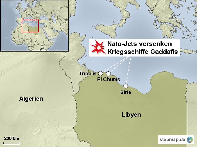 Die NATO hat bei Luftangriffen in Libyen nach eigenen Angaben acht Kriegsschiffe von Machthaber Muammar al-Gaddafi zerstört. Die Angriffe seien gegen die Häfen von Tripolis, El Chums und Sirte geflogen worden, teilte das Militärbündnis mit. Angesichts der zunehmenden Aktivitäten der libyschen Marine habe die NATO keine andere Wahl gehabt, als "entscheidende Aktionen" zum Schutz der libyschen Zivilbevölkerung und der NATO-Kräfte zu Meer zu unternehmen, erklärte Admiral Russ Harding.