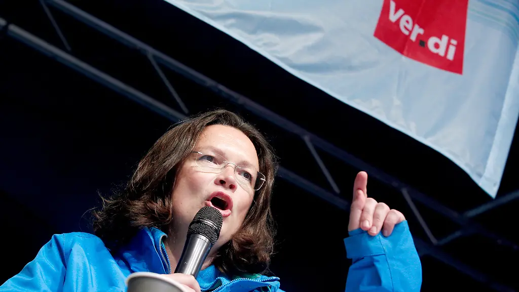In ihrer quasi ersten öffentlichen Amtshandlung als SPD-Chefin zieht Nahles gegen den Onlinehändler Amazon zu Felde. Dessen Gründer Bezos erhält am Abend einen Preis vom Axel-Springer-Verlag. Nahles nennt die Auszeichnung unverdient und geht demonstrieren.