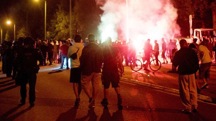 Insgesamt waren demnach 136 Polizisten im Einsatz. Es seien Ermittlungen wegen Landfriedensbruchs eingeleitet worden. Berichte über Festnahmen wurden von der Polizei jedoch dementiert. Im Vordergrund habe für die Beamten gestanden, die Lage unter Kontrolle zu bringen und Angriffe zu unterbinden, sagte eine Polizeisprecherin auf Anfrage. Sie sprach von einer "Gefahr für Leib und Leben".