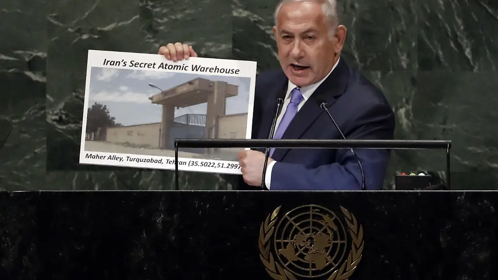 Israels Ministerpräsident Benjamin Netanjahu hat den Iran beschuldigt, in Teheran ein "geheimes Atom-Lagerhaus" im Rahmen seines Nuklearprogramms zu unterhalten. In den vergangenen Wochen habe die Regierung daraus 15 Kilogramm radioaktives Material entfernt und in der Hauptstadt verteilt, sagte Netanjahu in seiner Rede bei der UN-Vollversammlung.