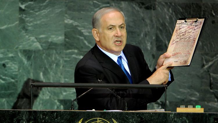 Die internationale Gemeinschaft müsse die "Tyrannen von Teheran" daran hindern, sich die Atombombe zu beschaffen, sagte Netanjahu. "Die größte Bedrohung, mit der die Welt konfrontiert ist, ist das Bündnis zwischen religiösem Fundamentalismus und Massenvernichtungswaffen", sagte der Regierungschef. Die Vereinten Nationen müssten den Iran dringen an der Entwicklung von Atomwaffen hindern.
