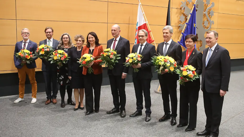 Ramelow hatte am Nachmittag erst im dritten Wahlgang die erforderliche einfache Mehrheit erreicht. Nach seiner Vereidigung ernannte der 64-Jährige die Minister seiner Minderheitsregierung aus Linkspartei, SPD und Grünen. Gleich nach seiner Wiederwahl lud Ramelow die Christdemokraten zur Zusammenarbeit ein. Er danke der CDU-Fraktion, dass sie trotz der Auseinandersetzungen mit der Bundespartei nun mit für stabile Verhältnisse im Freistaat gesorgt habe. In seiner Antrittsrede zeigte er sich zudem bereit, auch auf die FDP zuzugehen.
