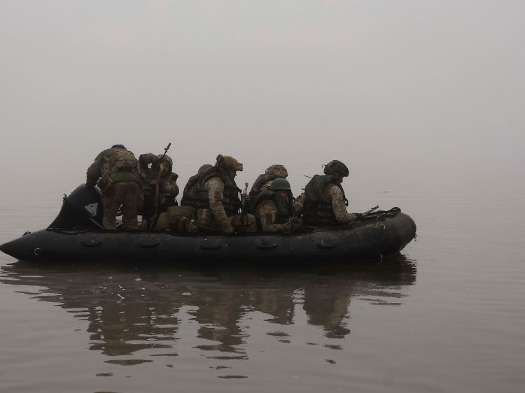 Ukrainische Marineinfanterie am Dnipro: mit Schlauchbooten über den Strom.
