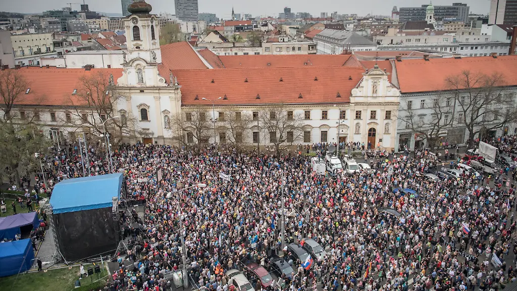 Die im März unter dem Druck von Massenprotesten erfolgten Rücktritte von Langzeit-Regierungschef Robert Fico und Innenminister Robert Kalinak konnten die Lage bisher nicht beruhigen. Die Hauptforderung der allwöchentlich in Bratislava und anderen Städten des Landes stattfindenden Demonstrationen ist seitdem die Entlassung von Polizeipräsident Gaspar, der dem früheren Innenminister Kalinak nahestehen soll, der selbst unter Korruptionsverdacht steht.