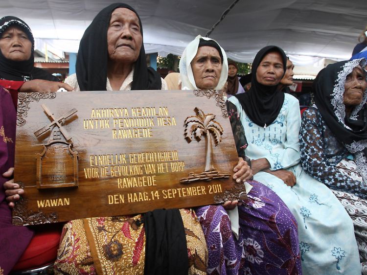 Im September hatte ein Zivilgericht in Den Haag in einer historischen Entscheidung die Niederlande für das Massaker verantwortlich gemacht und damit der Klage von acht Witwen und einem Überlebenden auf Entschädigung Recht gegeben. Drei der Kläger sind inzwischen verstorben. Bereits vor der Gerichtsentscheidung hatte der niederländische Staat der Gemeinde von Rawagede 850.000 Euro als Wiedergutmachung zugesagt und will nach dem Gerichtsurteil zusätzlich 180.000 Euro an die Kläger und ihre Familien zahlen.