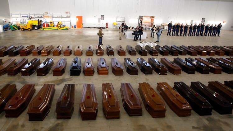 Hunderte Särge verdeutlichten das Ausmaß der Katastrophe vor Lampedusa am 3. Oktober 2013. Doch gestorben wird weiter im Mittelmeer.