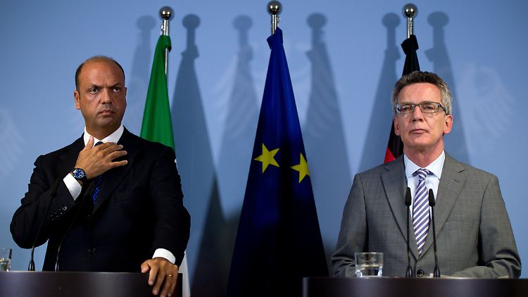 Alfano und de Maizière. Italien hat den anderen EU-Staaten die Pistole auf die Brust gesetzt und das Ende der Rettungsmission "Mare Nostrum" angekündigt.
