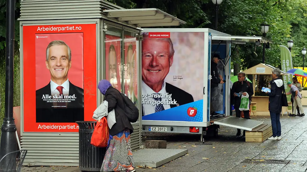 Herausgefordert wird Solbergs Regierung von der sozialdemokratischen Arbeiterpartei (AP) mit ihrem Spitzenkandidaten Jonas Gahr Støre. Er baut auf die Unterstützung von Zentrumspartei und Sozialistischer Linkspartei, mit denen die Arbeiterpartei von 2005 bis 2013 zusammen regiert hatte, aber auch sie brauchen Unterstützung.