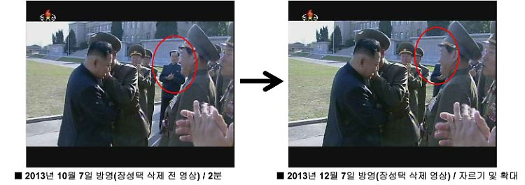 Rätselhaft bleibt auch die Beobachtung, dass Kims Onkel aus einem Propagandafilm offenbar wegretuschiert worden ist. Die Bildausschnitte wurden so bearbeitet, dass Jang über die Außenlinie wandert, oder so, dass er von anderen Personen verdeckt wird. Entsprechende Screenshots hat das nordkoreanische Verteidigungsministerium selbst veröffentlicht.
