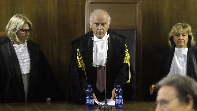 Gerichtspräsident D'Avossa und seine Beisitzerinnen bei der Verlesung des Urteils in Mailand.