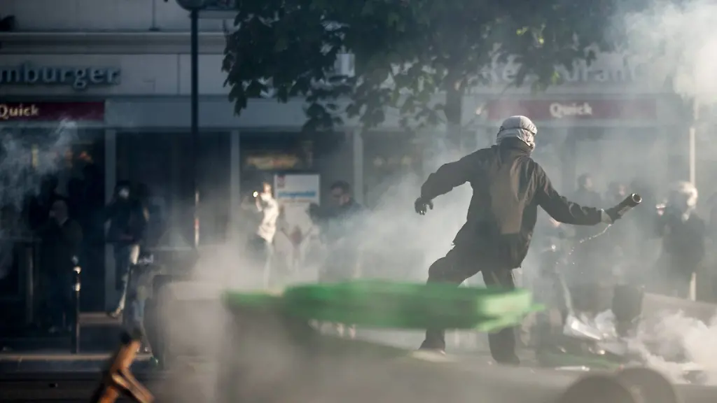 Am Nachmittag war es in der französischen Hauptstadt bereits am Rande von Demonstrationen zum 1. Mai zu Ausschreitungen gekommen. Gegen mehrere Vermummte, die auf Sicherheitskräfte losgehen wollten, ging die Polizei mit Tränengas und Wasserwerfern vor. Laut Polizei setzten gewalttätige Demonstranten Wurfgeschosse gegen Beamte ein. Ein Polizist und ein Demonstrant wurden leicht verletzt. Knapp 20 Menschen wurden festgenommen.