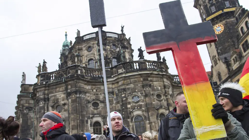 Ein bekannter Scharfmacher darf sich zumindest per Grußwort an die Demonstranten wenden. "Ihr seid nicht allein", wird da verlesen. Es sind Worte des niederländischen Rechtspopulisten und Europaskeptikers Geert Wilders, der die komplexen Zuwanderungsprobleme schon mal auf die Frage "Wollt ihr mehr oder weniger Marokkaner?" herunterbrach. Im Europawahlkampf verglich er den Islam mit dem Faschismus. Wilders ist der erste Parteipolitiker, von dem ein Grußwort auf der Pegida-Bühne verlesen wird. Eigentlich betont die Gruppe, auch an diesem Sonntag wieder, ihre Überparteilichkeit. Wilders ist nun der nächste, der die Leute für sich vereinnahmen möchte. "Ihr seid Teil von etwas ganz Großem", schreibt er.