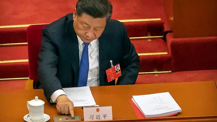 Chinas Staatschef Xi Jinping votiert bei der Abstimmung über das umstrittene Sicherheitsgesetz für dessen Annahme.