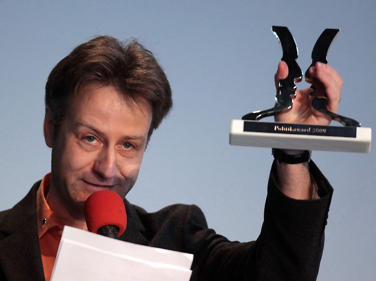 Der Parteivorsitzende der Piraten, Jens Seipenbusch, mit dem "Politik-Award", den seine Partei im Jahr 2009 erhielt.