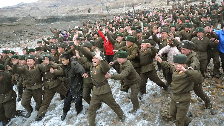 Soldaten und deren Familien hatten dem Machthaber bei seinem Besuchen an der Grenze zugejubelt. Sie schrien vor Freude und reckten die Arme in die Höhe, wie im Staatsfernsehen zu sehen war. Einige hielten die Hände vor das Gesicht, um ihre Tränen zu verbergen. Die Szenen wiederholten sich, als Kim die Insel Mu per Boot wieder verließ. Dutzende Menschen rannten ins eiskalte Wasser, um den Machthaber zu verabschieden. Um die Kim-Dynastie wird seit jeher ein großer Personenkult veranstaltet; Kritikern zufolge sind die Darbietungen organisiert.