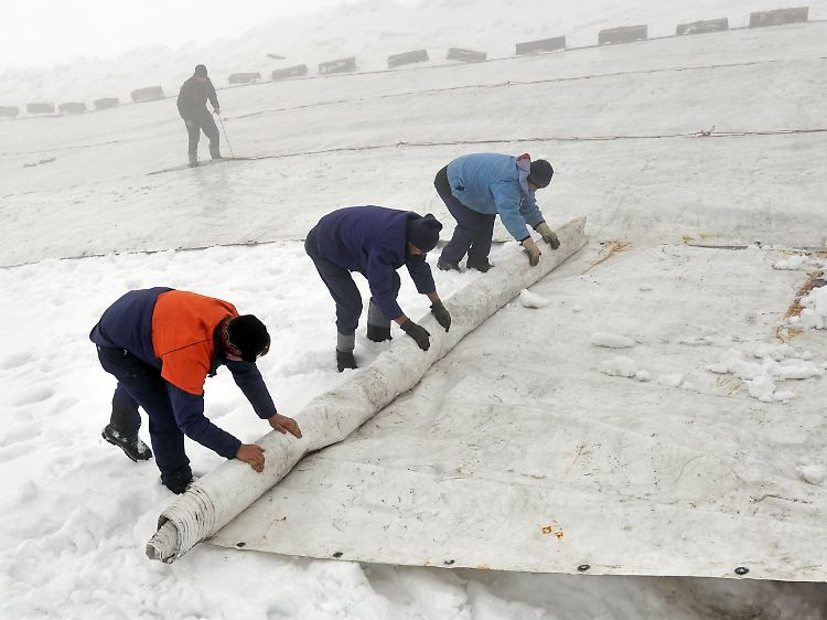 Anpassung der besonderen Art: Anfang Juni wird auf der Zugspitze der Gletscher abgedeckt.