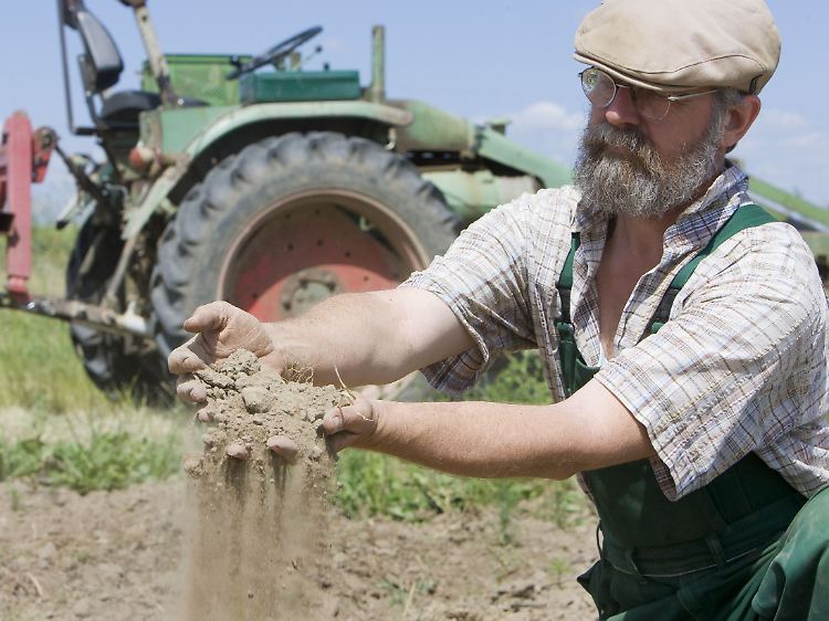 Brandenburg im Juni dieses Jahres: Bauer Hans-Peter Frucht zeigt, wie ausgetrocknet der Boden ist.