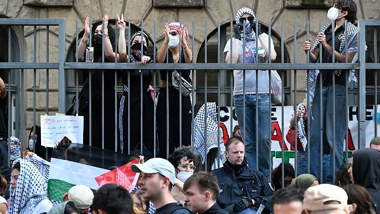 Die Polizei hatte am Nachmittag mitgeteilt, den Demonstrierenden sei ein neues Versammlungsgelände in etwas größerer Entfernung von den Uni-Gebäuden zugewiesen worden. Einige Demonstrierende vor dem besetzten Gebäude seien dorthin abgedrängt worden, teils unter Anwendung von Zwang.