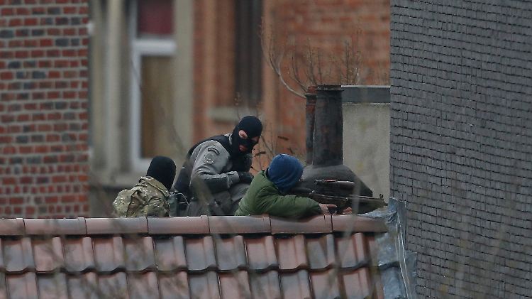 Als Polizisten im Rahmen groß angelegter Razzien eine Wohnung in Brüssel durchsuchen wollen, eröffnen die Bewohner plötzlich das Feuer - ein Angreifer wird beim Schusswechsel getötet. Berichte, wonach zwei Flüchtige gefasst sind, bestätigen sich zunächst nicht.