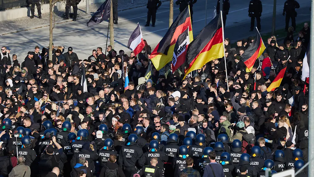 Drei Teilnehmer der rechten Demonstration wurden wegen des Zeigens von Symbolen verfassungswidriger Organisationen bereits einem Richter vorgeführt, wie die Polizei weiter mitteilte. Demnach hatte einer der Betroffenen eine verbotene Siegrune am Hals, die beiden anderen hätten den Hitlergruß gezeigt. Der Richter verfügte den Angaben zufolge, dass die drei in Unterbindungsgewahrsam bleiben sollten.