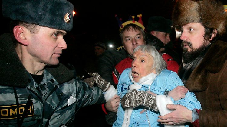 31.12.2009, 19:44 UhrEin Großaufgebot der russischen Polizei löst in Moskau eine nicht genehmigte Protestveranstaltung von Regierungsgegnern auf und nimmt etwa 50 Menschen fest. Darunter ist auch die "Grande Dame" der russischen Bürgerrechtsbewegung, die bereits 82-jährige Ljudmila Alexejewa.