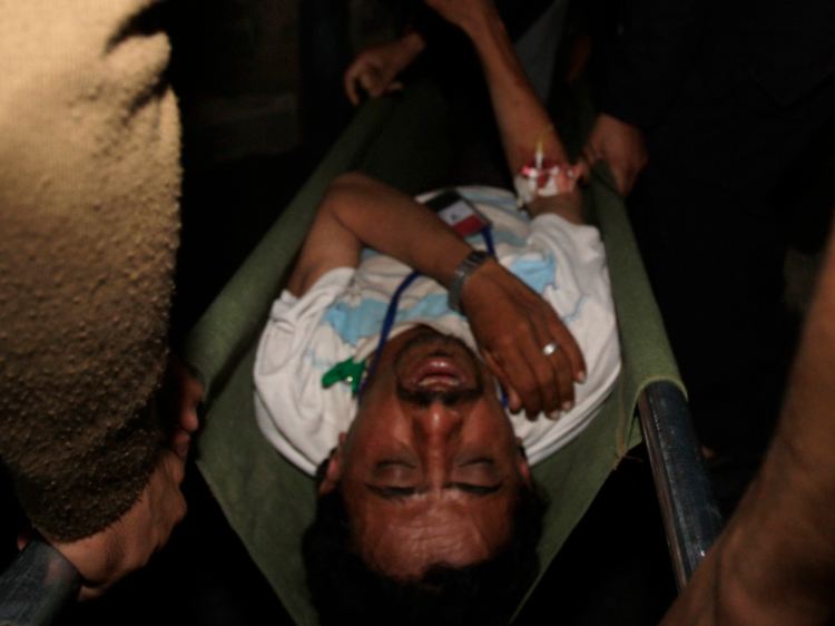 Ein verletzter Regierungsgegner wird ins Krankenhaus gebracht.