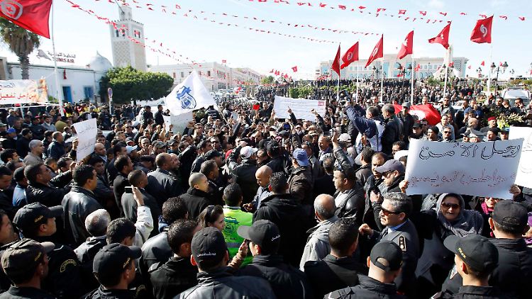 Keine Handlanger der Regierung Polizisten demonstrieren in Tunis