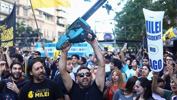 Der Ökonom ist ein Profi, seit Jahren im argentinischen TV präsent. Am Sonntag jedoch tritt er als Kopf der Partei "La Libertad Avanza" ("Die Freiheit schreitet voran") in der entscheidenden Stichwahl gegen den peronistischen Wirtschaftsminister Sergio Massa an. In Umfragen liegen die beiden so gut wie gleichauf. Viele gehen davon aus, dass Milei einen leichten Vorteil hat. Doch im ersten Wahlgang galt Milei ebenfalls als Favorit - und Massa übertrumpfte den Emporkömmling. Milei ist seit drei Jahren in der Politik, Massa seit drei Jahrzehnten. Der Minister hatte unter anderem Sonderzahlungen an Einkommensschwache veranlasst und vor immensen Preissteigerungen bei einem Sieg Mileis gewarnt. Das wirkte offenbar.