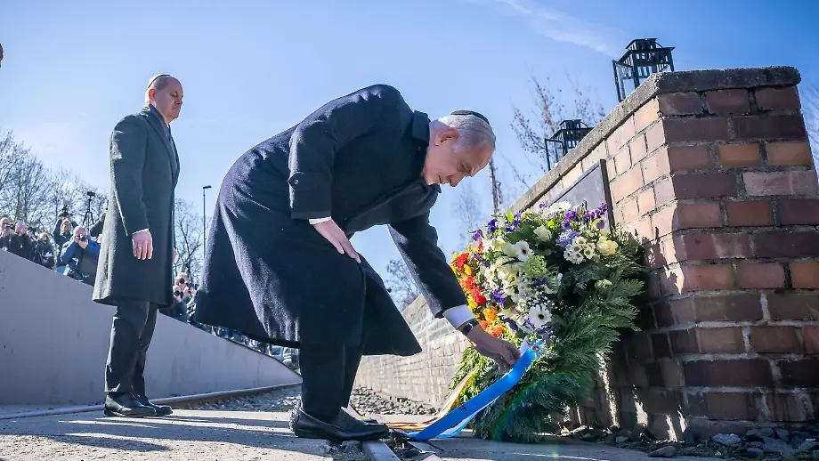 Begleitet von Protesten wird Bundeskanzler Olaf Scholz am heutigen Donnerstag den israelischen Ministerpräsidenten Benjamin Netanjahu in Berlin empfangen. Die beiden werden zunächst die Holocaust-Gedenkstätte am Bahnhof Grunewald besichtigen, von wo aus 1941 und 1942 etwa 10.000 Juden mit Zügen der Reichsbahn in Arbeits-, Konzentrations- und Vernichtungslager der Nazis gebracht wurden. Anschließend sind ein gemeinsames Mittagessen und eine Pressekonferenz im Kanzleramt geplant. Später wird Netanjahu dann noch Bundespräsident Frank-Walter Steinmeier im Schloss Bellevue treffen.