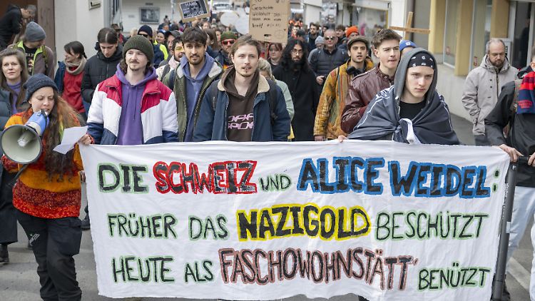 Im Schweizer Wohnort von AfD-Kanzlerkandidatin Alice Weidel und ihrer Familie sind am Rande einer Demonstration fünf Menschen vorübergehend festgenommen worden. Der angemeldete und genehmigte Protest in Einsiedeln im Kanton Schwyz richtete sich "gegen den Rechtsruck". Allerdings fanden sich nach Aufrufen in sozialen Medien auch Gegendemonstranten ein. Es habe "Provokationen und Handgreiflichkeiten" gegeben, berichtete die Polizei. Größere Ausschreitungen seien aber verhindert worden. Die fünf Festgenommenen hätten verbotene Gegenstände dabeigehabt oder sich nicht an polizeiliche Weisungen gehalten, hieß es weiter. Sie seien angezeigt worden.