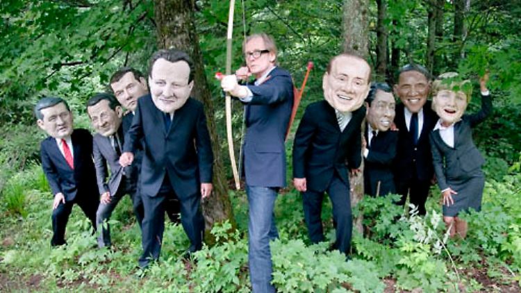 "Robin Hood" und die Staats- und Regierungschefs der G8-Staaten - eine Aktion der Hilfsorganisation Oxfam.