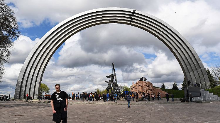 Das Denkmal der ukranisch-russischen Freundschaft unter dem Bogen der Völkerfreundschaft wurde bereits Ende April abmontiert.