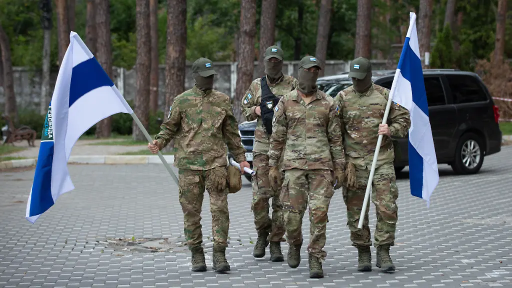 Das aus Russen bestehende Freiwilligenkorps "Freiheit Russlands" kämpft auf der Seite der Ukraine. Jetzt fordern die Paramilitärs russische Soldaten auf, sich zu ergeben. Auch könnten sie der Legion beitreten, so die Kämpfer.