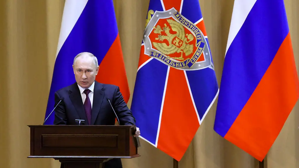 Kiew und seine Verbündeten bauten Terroristenzellen auf, behauptet Russlands Präsident Putin. Zudem wollten sie die nachrichtendienstlichen Erkenntnisse Moskaus ausspähen. Die Offiziere seines Inlandsgeheimdienstes schwört er auf eine harte Linie gegen seine Gegner ein.