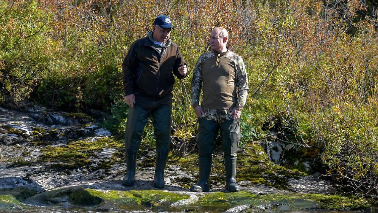 Wladimir Putin angelt einen Fisch aus dem Wasser, stapft in Tarnfarben durch ein Heidekraut-Feld und schaut immer wieder gedankenvoll in die Ferne: Der Kreml hat Fotos des russischen Präsidenten im Urlaub veröffentlicht. Das Staatsfernsehen zeigte zudem mehr als zehn Minuten lang von der Kreml-Pressestelle bereitgestellte Videos, die während des Trips Anfang September im Süden Sibiriens aufgenommen worden waren. Mit dabei war bereits zum wiederholten Mal auch Verteidigungsminister Sergej Schoigu, ein enger Freund Putins.