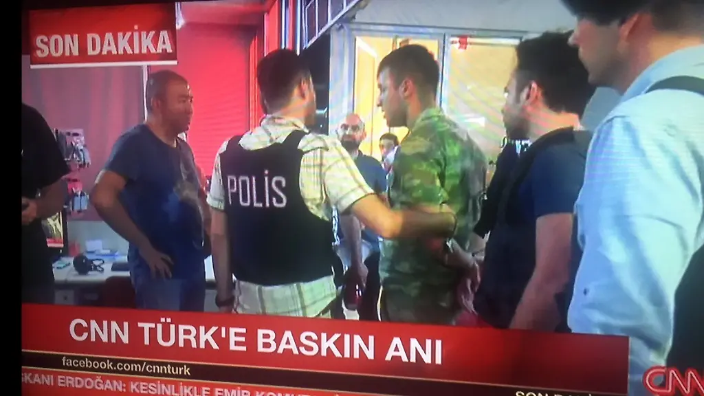 Dann stürmen Polizisten die Redaktion - bei Twitter gibt es ein Video von der chaotischen Szene. Menschen schreien, es gibt Festnahmen und Gedrängel. Rund eine Stunde wird der Sender von den Putschisten besetzt, um 3.30 Uhr deutscher Zeit wird der Sendebetrieb wieder augenommen. Die Redaktion sendet mithilfe ihrer Facebook-Seite weiter.