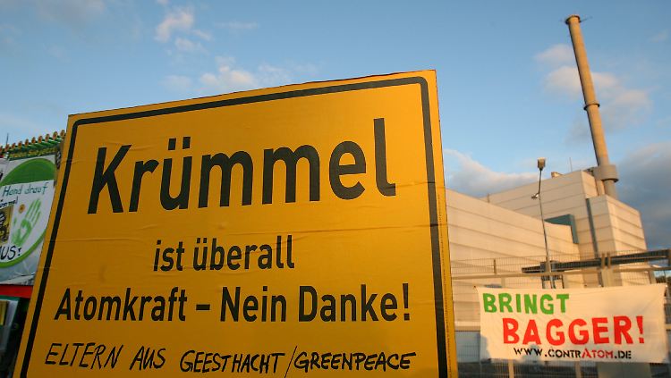 RWE fürchtet Auseinandersetzungen mit Atomkraftgegnern. (Schilder und Plakate gegen Atomkraft vor dem Atomkraftwerk in Krümmel)